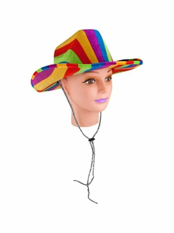Show your pride with this cool rainbow cowboy hat. Makes a great addition to any pride ensemble.