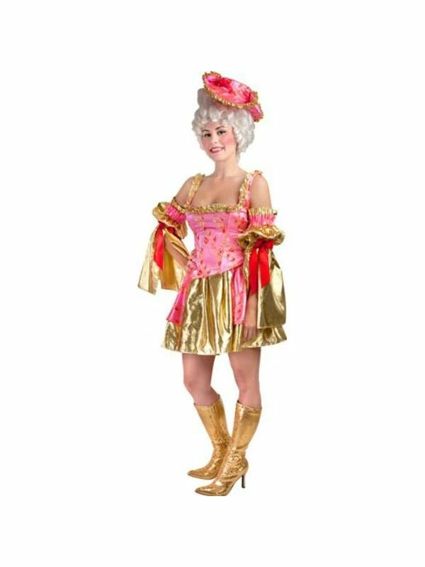 Queen Victoria’s ladies in waiting never looked quite like this! Our sexy Victorian style dress features a short gold skirt with a sexy top and matching sleeves.