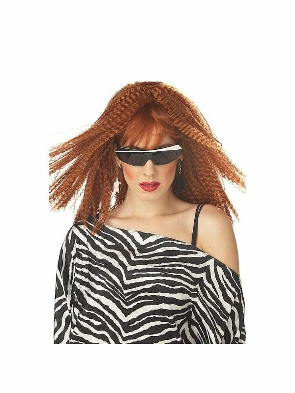 In the 80s crimped hair was HUGE. Enjoy nostalgia in this super cool 80s auburn crimped hair wig.