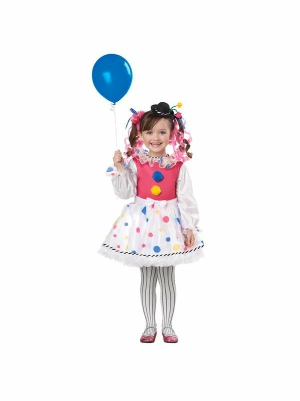 This toddler clown costume is too cute for words. The classy dress remembers a classic look with modest features appropriate for a child’s costume.