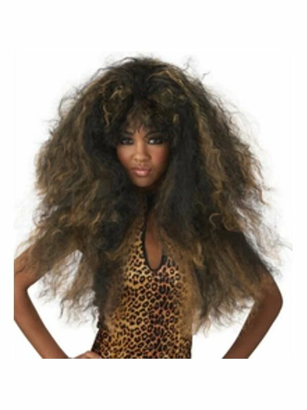 Our ladies afro style wild thang wig can also double as a cavewoman wig. Black and brown color.