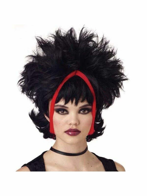 Adult Chunky Black & Red Gothic Streaked Costume Wig