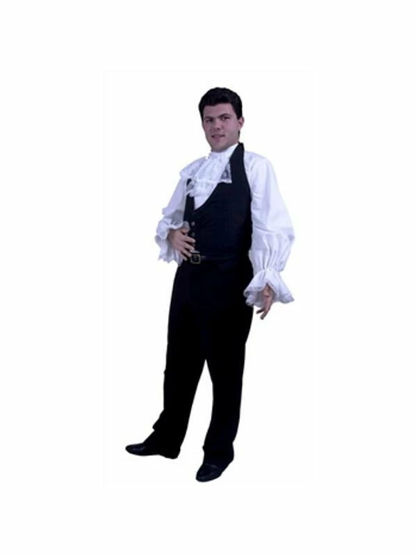 Our adult white vampire shirt has a removable lace jabot.