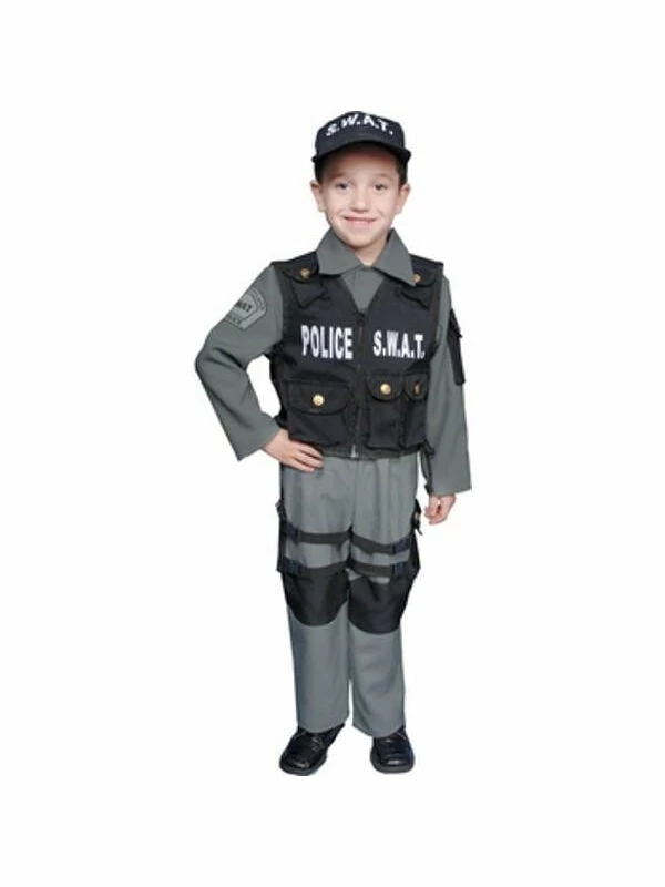 This child SWAT team costume is perfect for Halloween or for play time. Our youth SWAT outfit is perfect for any little boy. Makes a great group costume with any of our police and SWAT Team costumes.