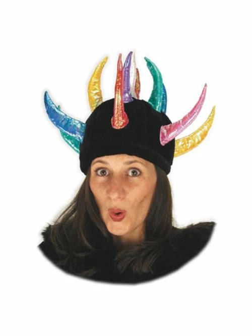 Our adult multi-colored horned hat is an outrageous hat to wear for any family gathering.