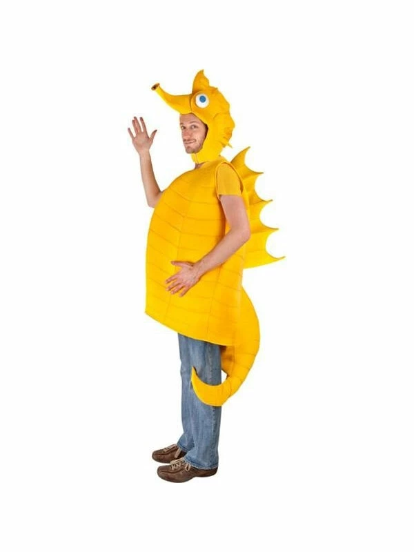 You will have a ball with this adult size Sea Horse costume. Bright yellow and made with quality fabric over foam, this seahorse is the perfect sea creature costume for any party animal this Halloween.