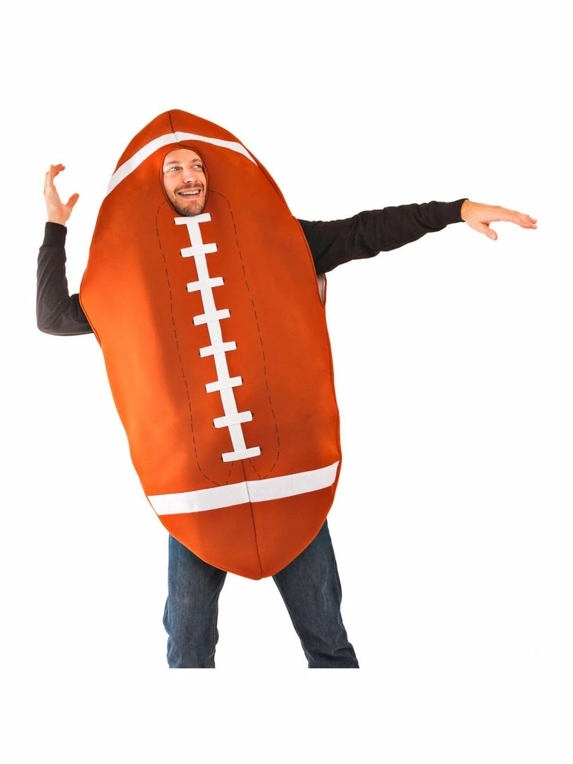 Football season is here at last! Our adult football costume features a hilarious jumpsuit shaped like the classic pigskin known to raise hopes and crush dreams every autumn.