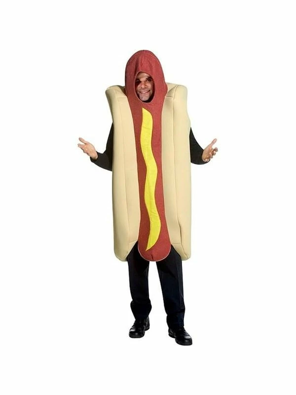 Our adult hot dog outfit is a entertaining mascot costume for Halloween or a grand opening for a restaurant.