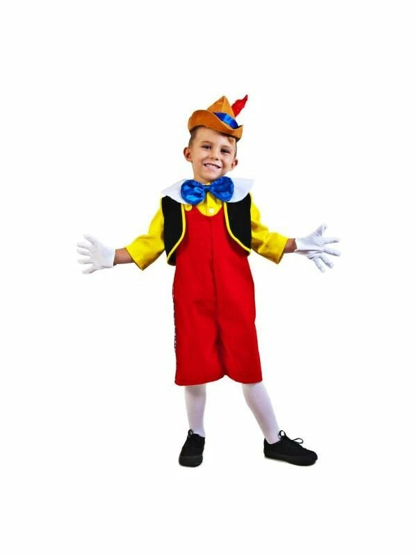 This deluxe Pinocchio costume features red overalls and the accessories to complete the costume.