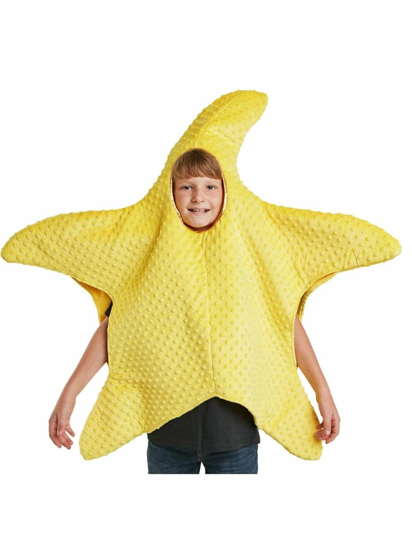 With their five arms, suction cup fingers, and peaceful attitude, sea stars are a favorite among children and beach goers the world over. Our child starfish costume features a tunic with printed details and fits most kids.