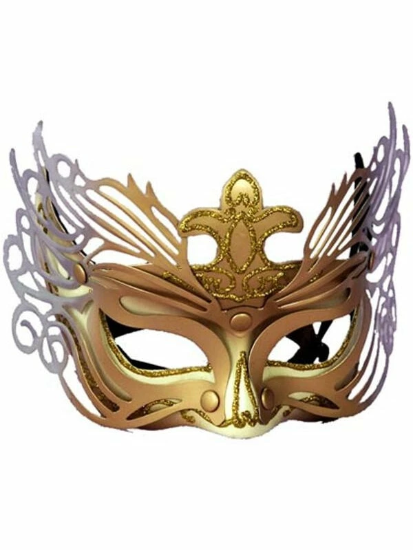 Our Silver and gold Venetian mask makes a great masquerade costume mask for any costume party.
