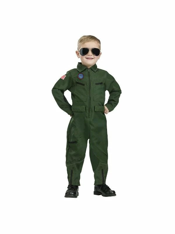 Now you child can take to the skies with our all new Topgun aviator jumpsuit costume. This costume features pockets, and aviator patches.