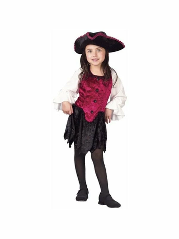 Our toddler First Mate Pirate outfit is a cute pirate dress for any young girl. This pretty pirate dress makes a great Halloween costume idea.