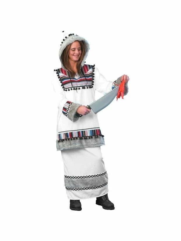 Cover up for the winter with this fantastic Eskimo costume. Our cool Inuit outfit is a fun, original costume. Go as a group with any of our other Eskimo costumes.