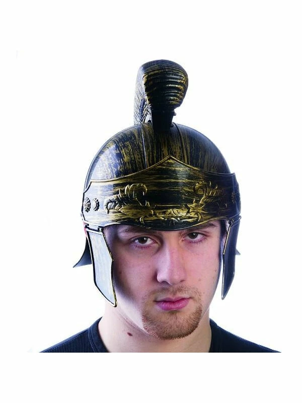 This Roman soldier helmet is made of hard plastic and fits most adults.