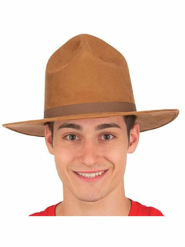 This tall Mountie costume hat is so large it looks just like a pop music producer’s hat.