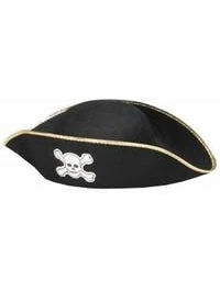Grrr mate. Our Permalux Pirate hat comes with a skull and cross bones logo and gold trim. Style of pirate crossbones may vary from actual photograph.
