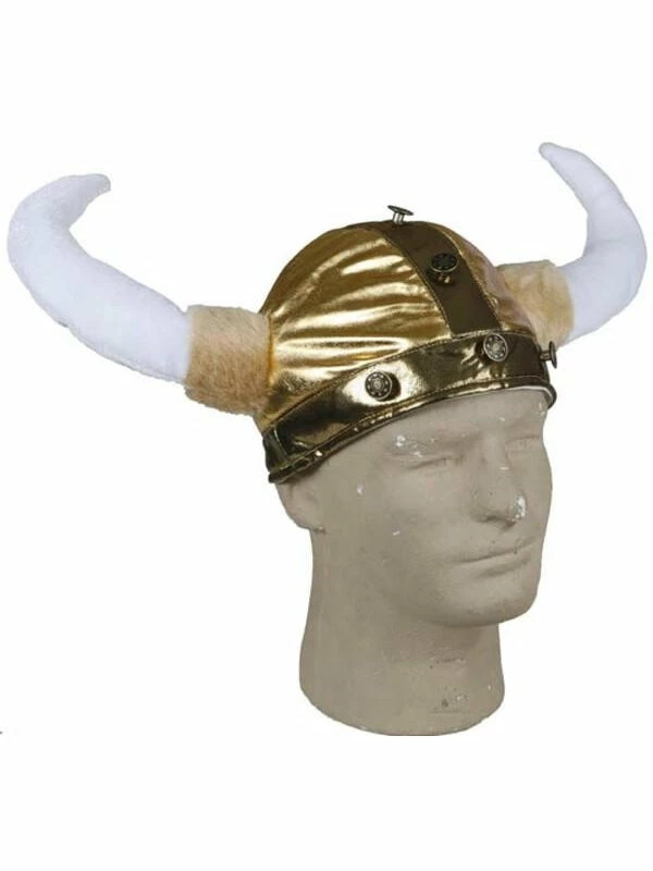 This Viking hat features horns and a faux fur rim for the perfect Nordic look.