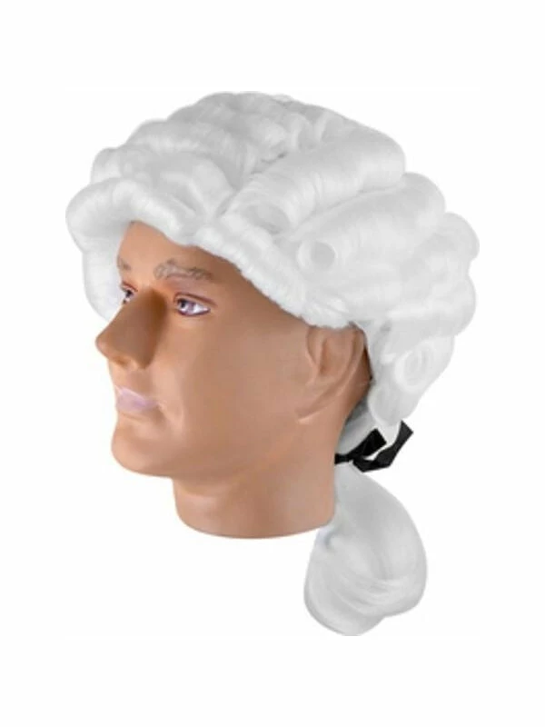 Settling the untamed New World is no excuse for a lapse in fashion. Dress in all pomp and circumstance with our classic Barrister wig.
