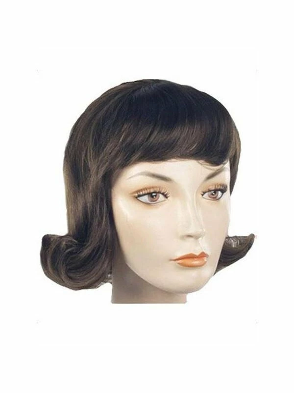 Our short brown hair wig is the perfect accessory to your Bettie Rubble or Gidget costume. This shoulder-length wig features bangs and a flip.