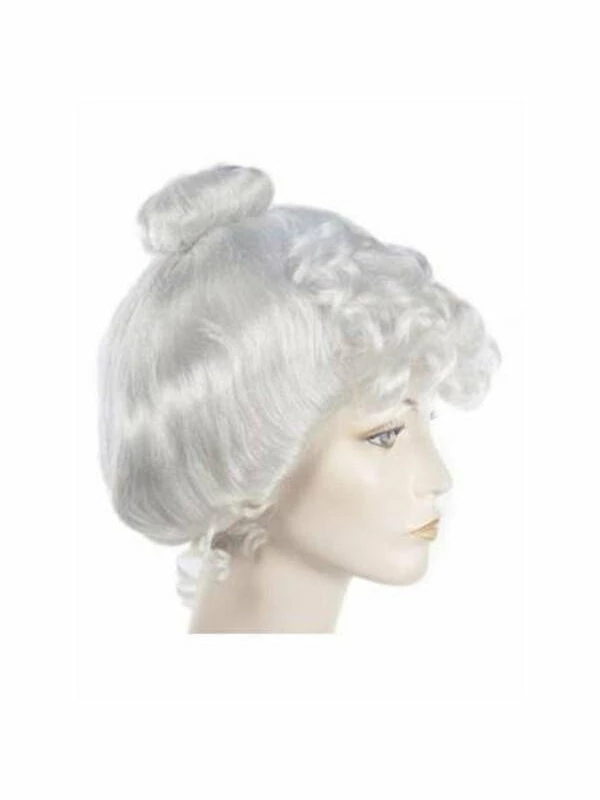 This high quality white wig features a bun and short bangs. It is perfect for any Mrs. Claus outfit.