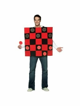 Game of strategy. Costume of comedy. Our adult checker board costume makes a funny outfit for anybody to wear this Halloween.