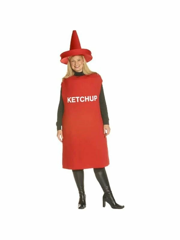 Our plus size ketchup bottle outfit is a fun costume for men or women. This also goes great with our other food costumes for a hilarious group costume idea.