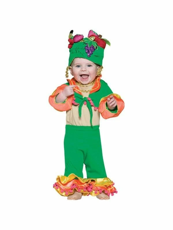 Do the Brazilian cha cha for Mardi Gras. Our infant Carmen Miranda jumper is an ideal girl’s baby costume idea for carnival celebrations or as an unique baby Halloween costume.