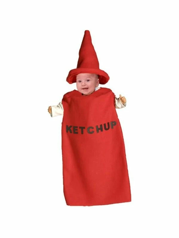 Our baby ketchup bottle outfit is a great addition to our adult hot dog and condiment costumes. We also have a dog hot dog costume available to insure no one is left out this Halloween.