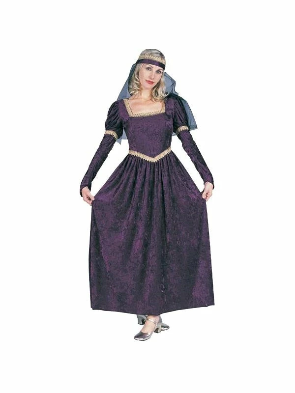 Our adult renaissance queen costume includes a dress, headpiece with veil.
