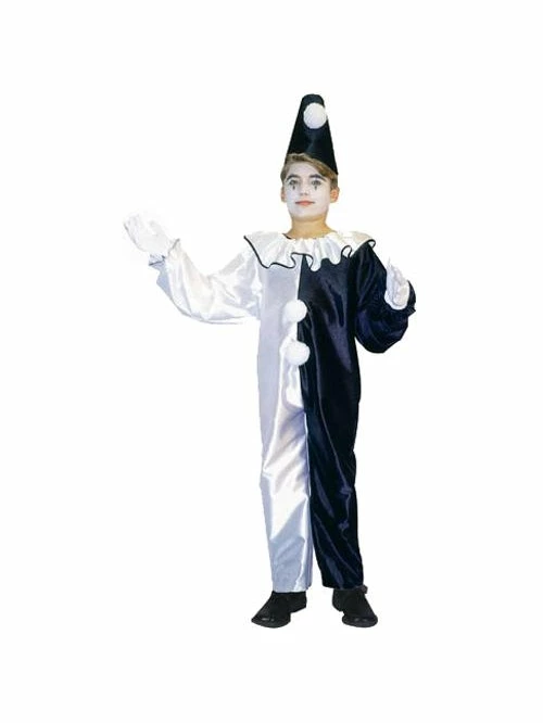 Our child’s harlequin boy costume includes a jumpsuit and hat.