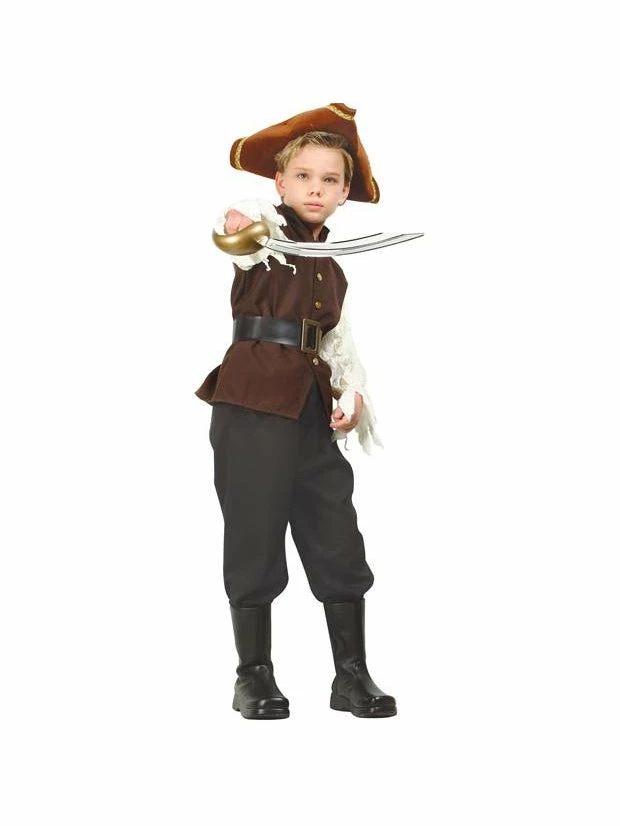Our boys high seas pirate outfit is a great looking pirate costume. This costume also makes a great colonial man costume.
