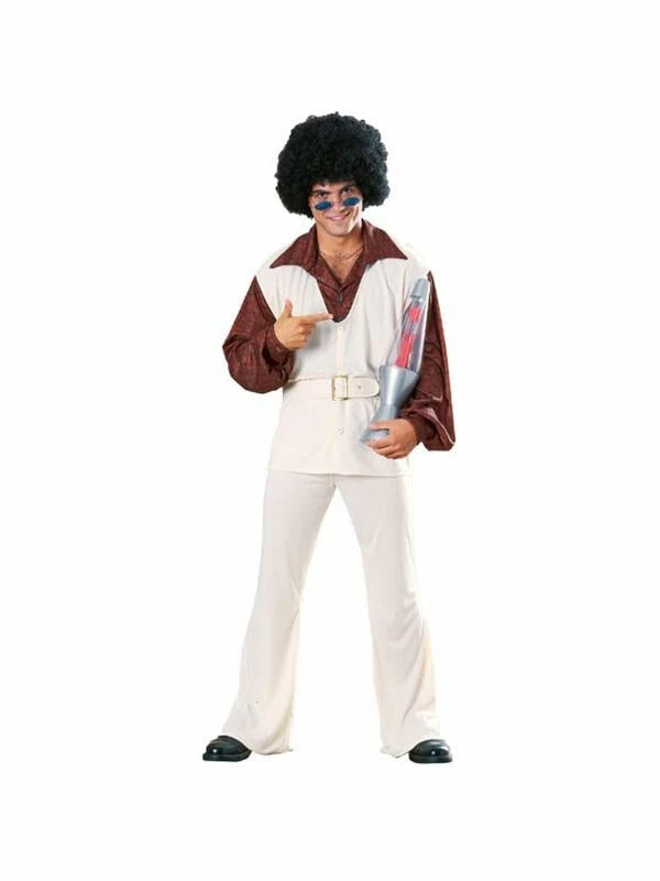 Party like the 70’s with our white polyester leisure suit. Just add an afro wig and platform shoes to perfect the ensemble.