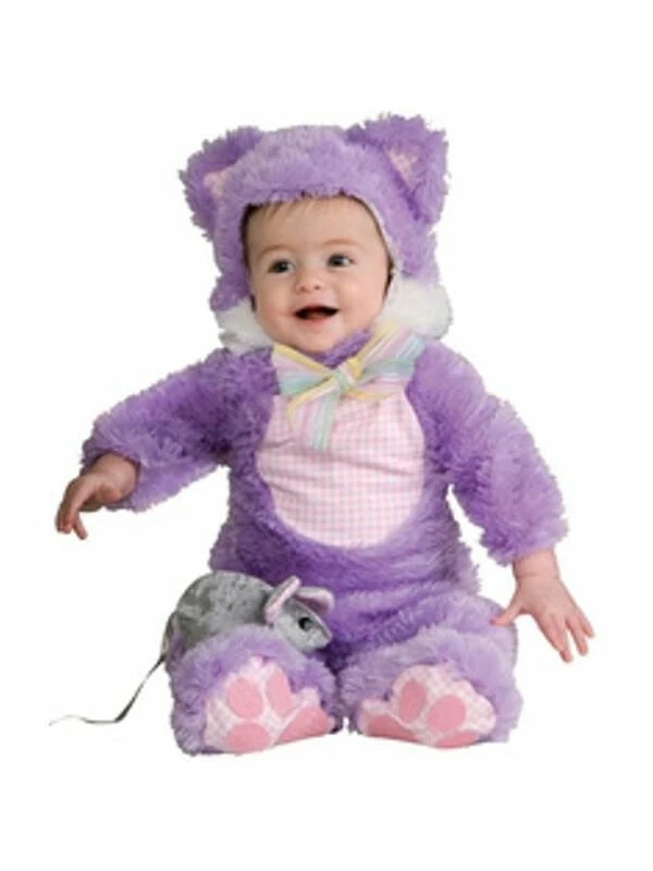 Purple may not be the natural color of cats, but this kitty costume is so darned cute you won’t mind. The soft, plush fabric has a cute pink plaid tummy with lovely feet details and a hood for the perfect feline costume.
