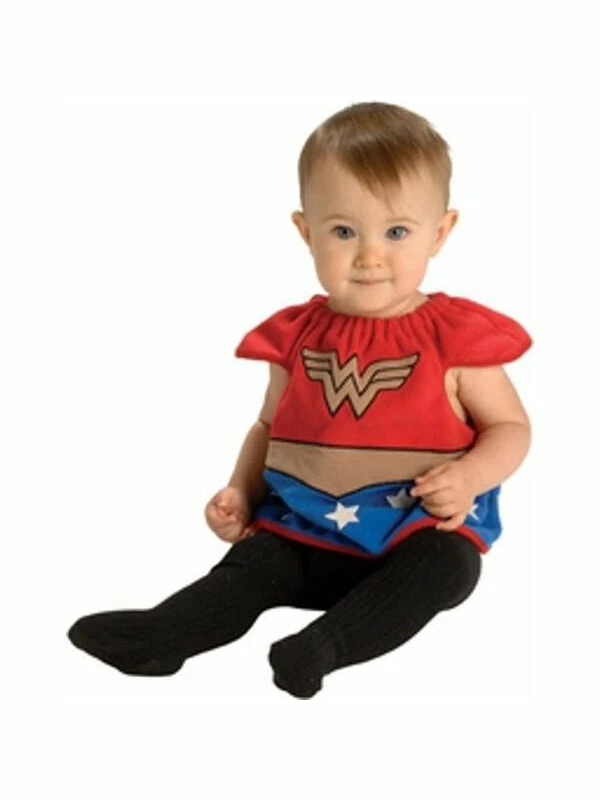 Our newborn baby Wonder Woman costume bib is an ideal outfit for everyday use. This imprinted bib doubles as a costume and an actual bib. Why worry about getting your babies costume dirty this Halloween? Just let your baby’s bib be their costume.