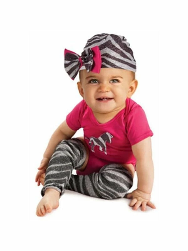 Make a picture perfect Halloween with this sassy zebra costume. The cute pink jumpsuit is simple and feminine with a zebra decal on the front. Headpiece and leggings offer a fun zebra print for a classic Halloween costume.