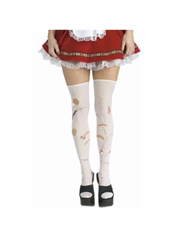 Our ripped and torn white thigh high tights add a little bit of classic horror to any ladies Halloween costume.