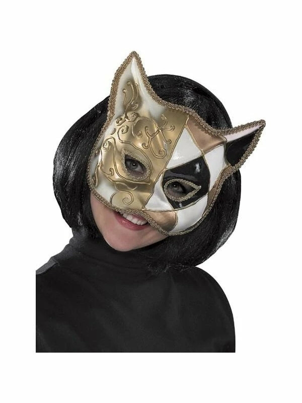 Our domino cat Venetian face mask is ideal for any Mardi Gras or carnival celebration.