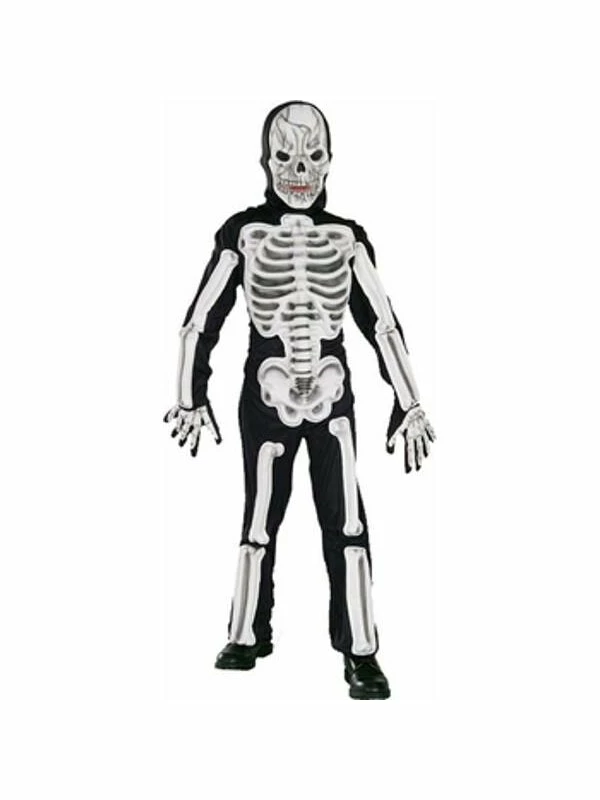 This child’s skeleton costume features molded ethylene vinyl acetate details.