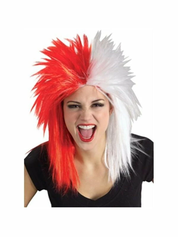 Our red and white sports wig is perfect for any Arizona Cardinals or Chicago Bulls fan. Spiked style for any sports fanatic.