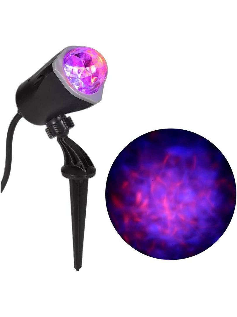 This bright purple spotlight shines a swirling show onto walls and other flat surfaces. It makes the perfect complement to any haunted house display at Halloween.