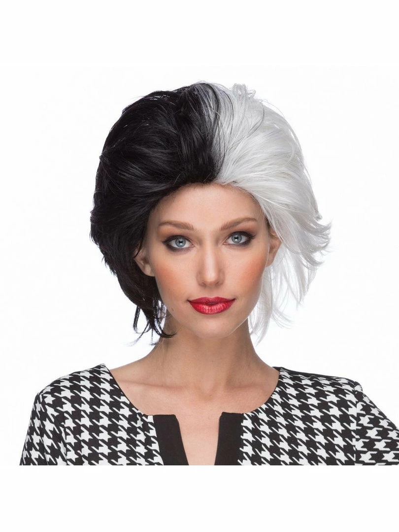 Get in touch with your cruel and devilish side with this black and white split Wicked Wig for all you villainous needs.